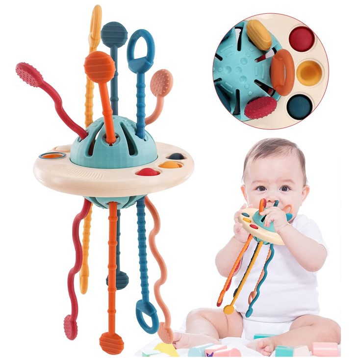 2. 1歳以上の子供向けの教育玩具、1歳以上の子供向けの旅行用おもちゃ、赤ちゃん用の発達玩具、飛行機旅行用の幼児用おもちゃとしてのモンテッソーリUFOシリコン引っ張りおもちゃ。 飛行機用の子供用旅行用おもちゃや、生後6か月から12か月の赤ちゃん用のモンテッソーリおもちゃなどがあります。 この感覚玩具は持ち運びが可能で、お子様の外出時の理想的な遊び相手になります。